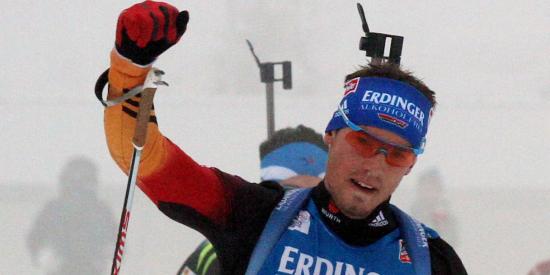 Обои Обладатель серебряной медали немецкий биатлонист Симон Шемпп на олимпиаде в Сочи