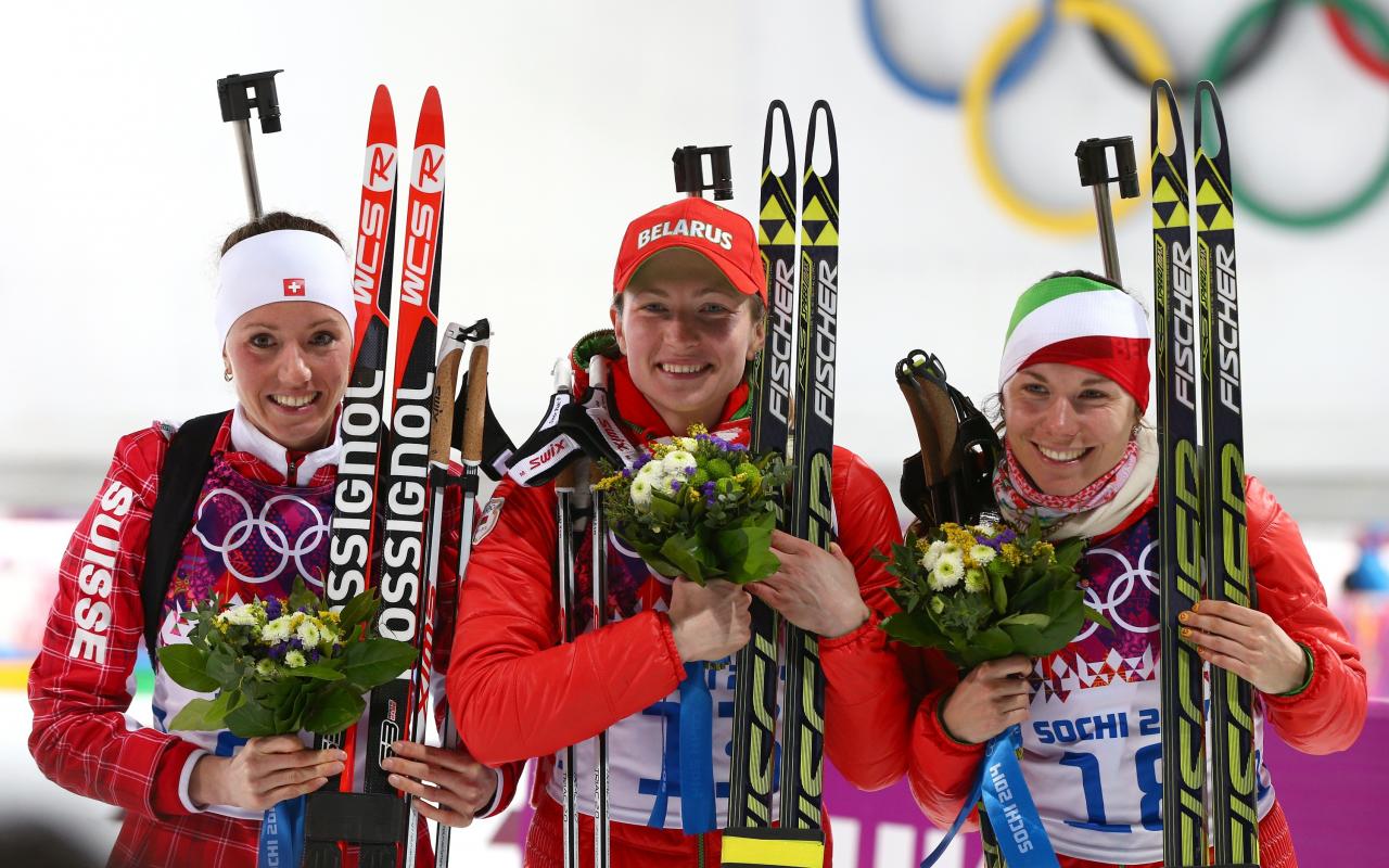 Обои Надежда Скардино из Белоруссии бронзовая медаль на олимпиаде в Сочи 2014 год