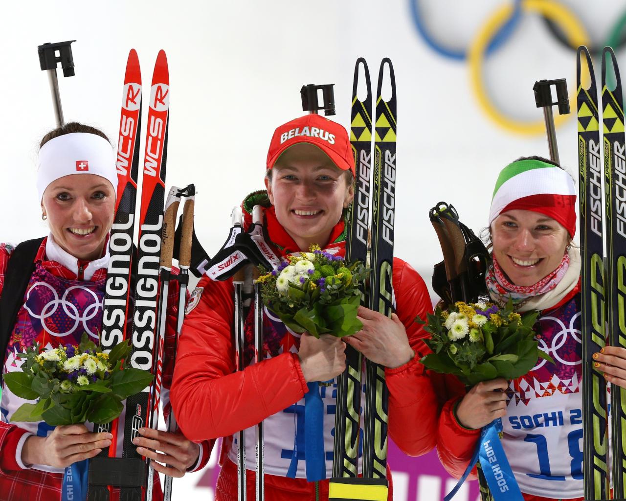Обои Надежда Скардино из Белоруссии бронзовая медаль на олимпиаде в Сочи 2014 год