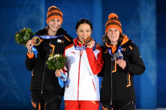 Обои Обладательница двух бронзовых медалей голландская конькобежка Маргот Бур на олимпиаде в Сочи