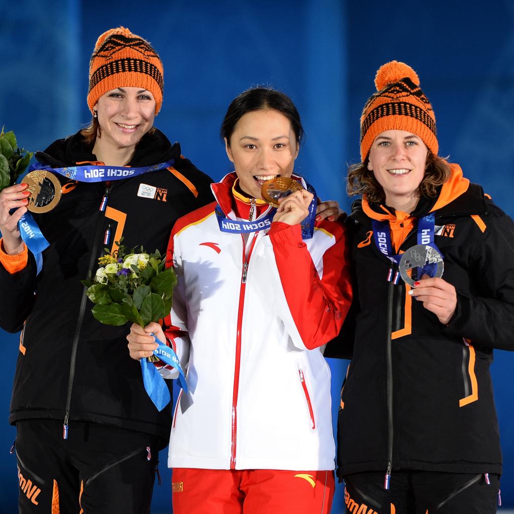 Обои Обладательница двух бронзовых медалей голландская конькобежка Маргот Бур на олимпиаде в Сочи