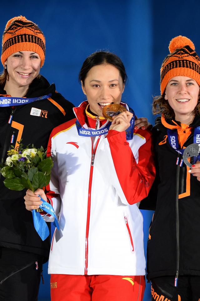 Обои Обладательница двух бронзовых медалей голландская конькобежка Маргот Бур на олимпиаде в Сочи