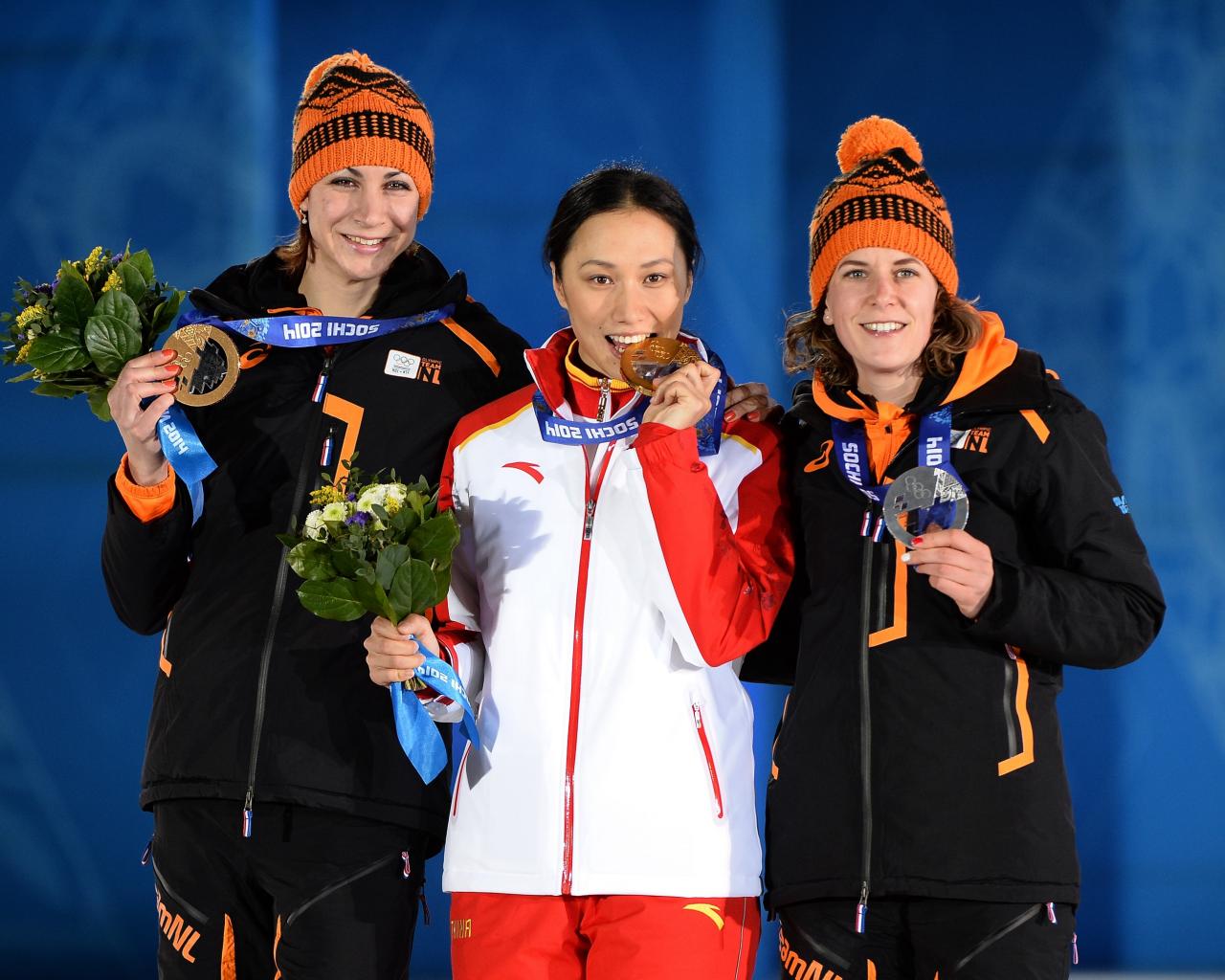 Обои Обладательница двух бронзовых медалей голландская конькобежка Маргот Бур на олимпиаде в Сочи