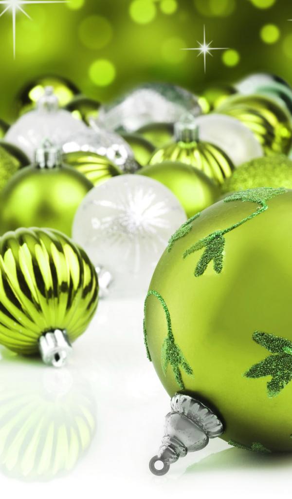 Обои Зеленые новогодние шары
