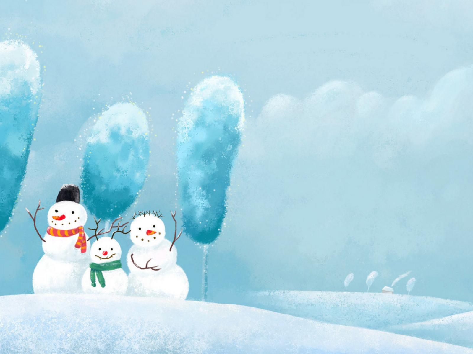 Обои Снеговики
