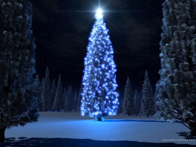 Обои Новогодняя елка в синих огнях