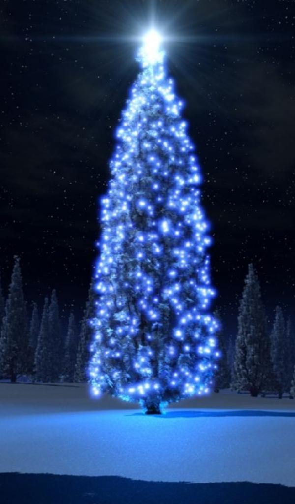 Обои Новогодняя елка в синих огнях