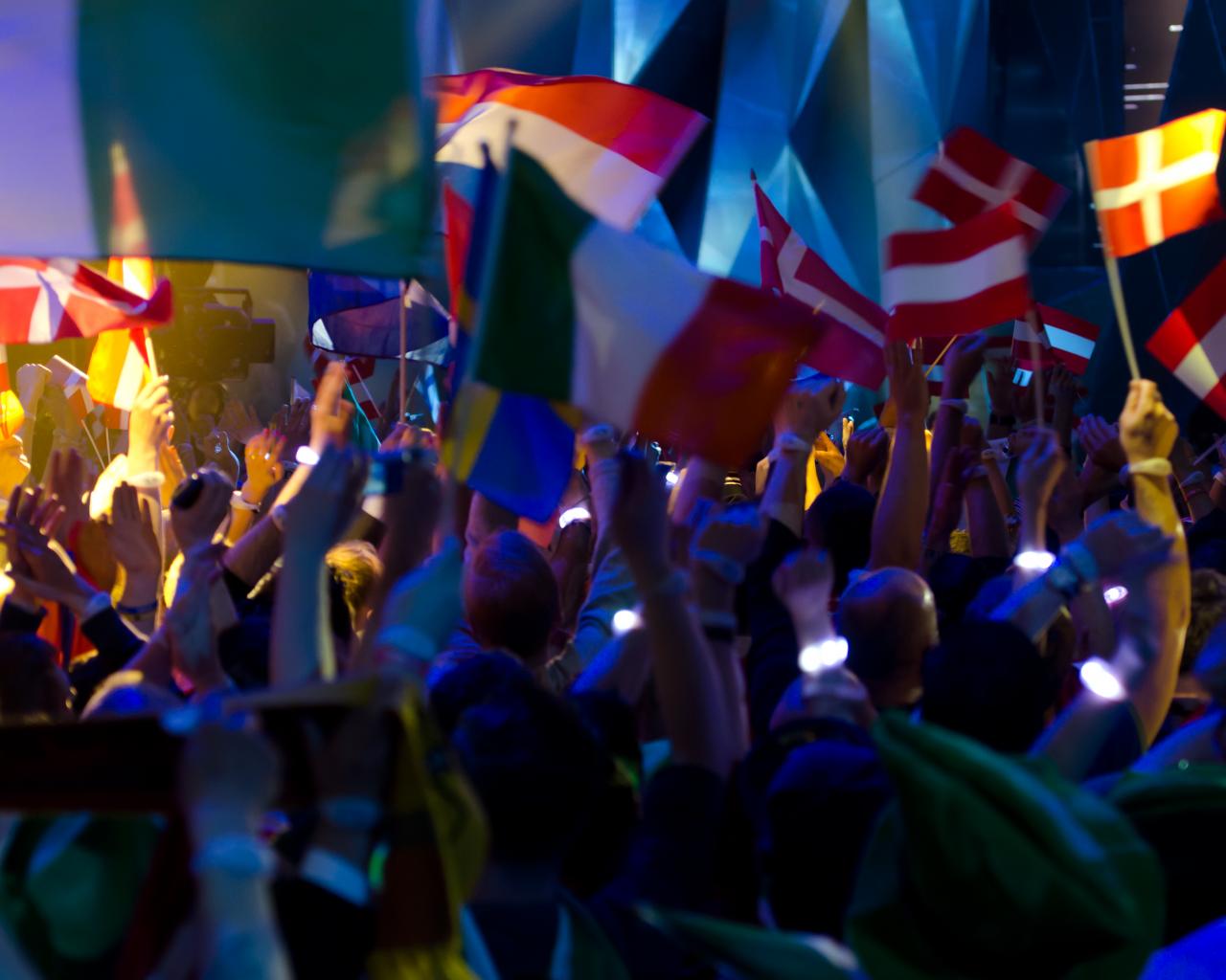 Обои Фанаты Евровидения с флажками