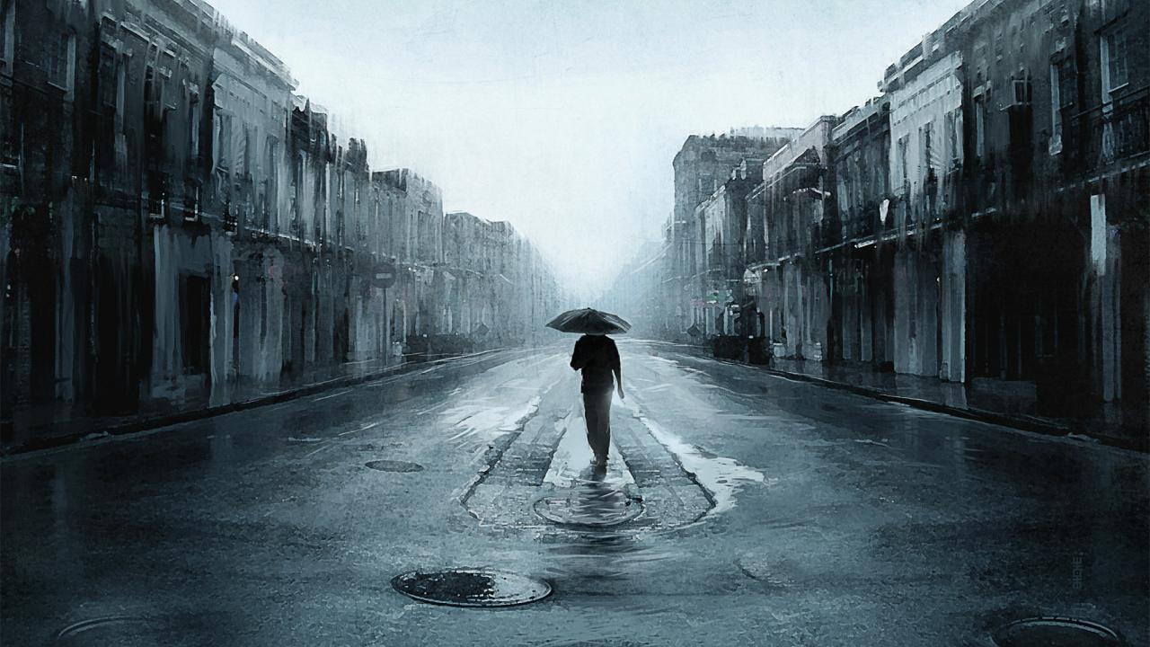 Обои Одинокий человек под зонтом
