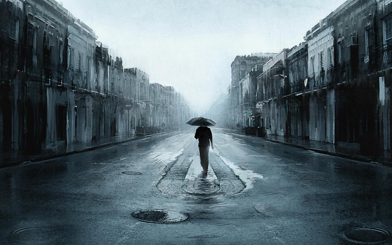 Обои Одинокий человек под зонтом