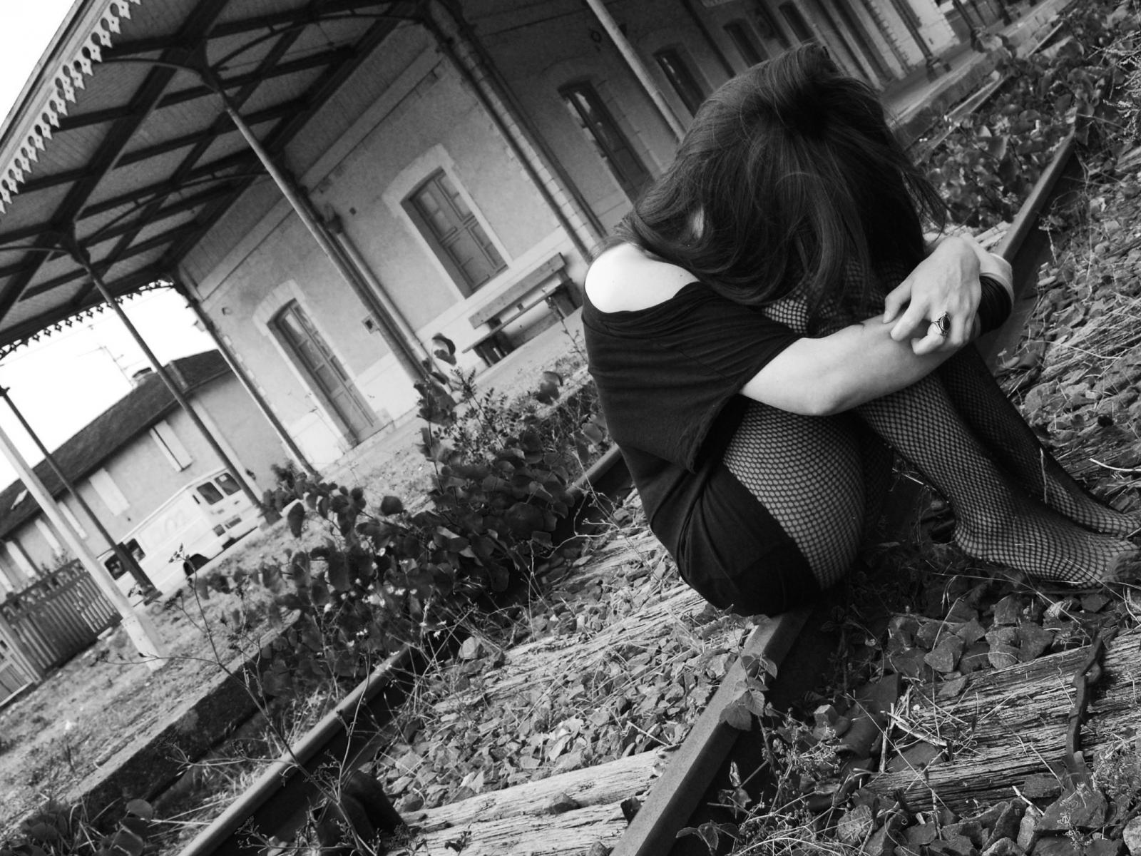 Обои Девушка сидит на рельсах