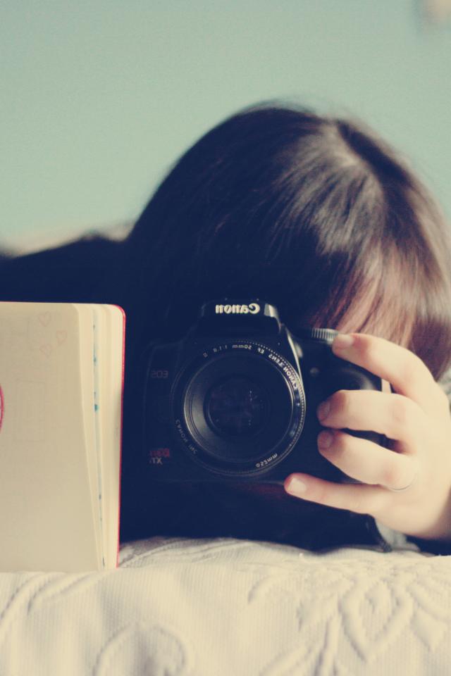 Обои Девушка с фотоаппаратом Кэнон