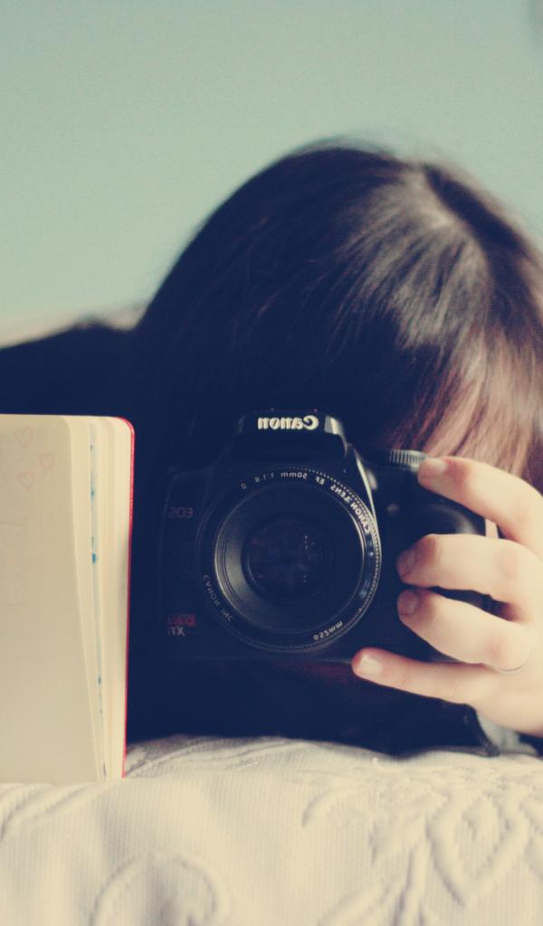 Обои Девушка фотограф с профессиональным фотоаппаратом Canon
