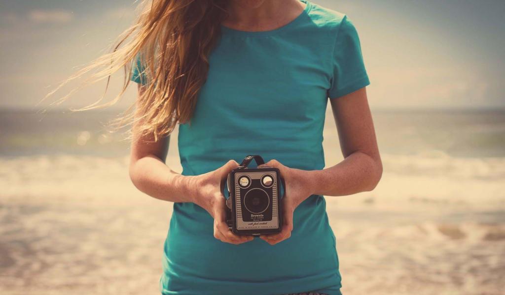 Обои Девушка с фотоаппаратом