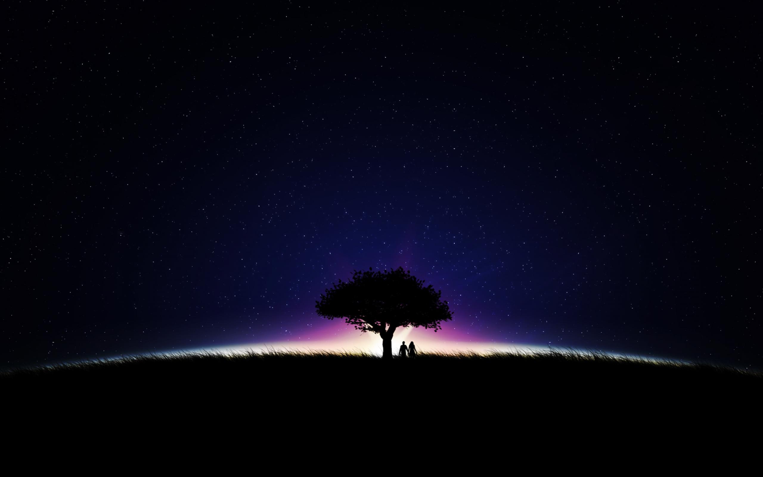 Обои Небо, Деревья, Ночь, Милая пара