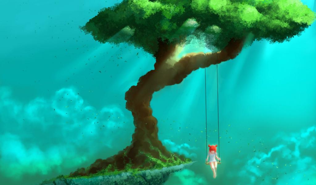 Обои Деревья, Девочка, качели