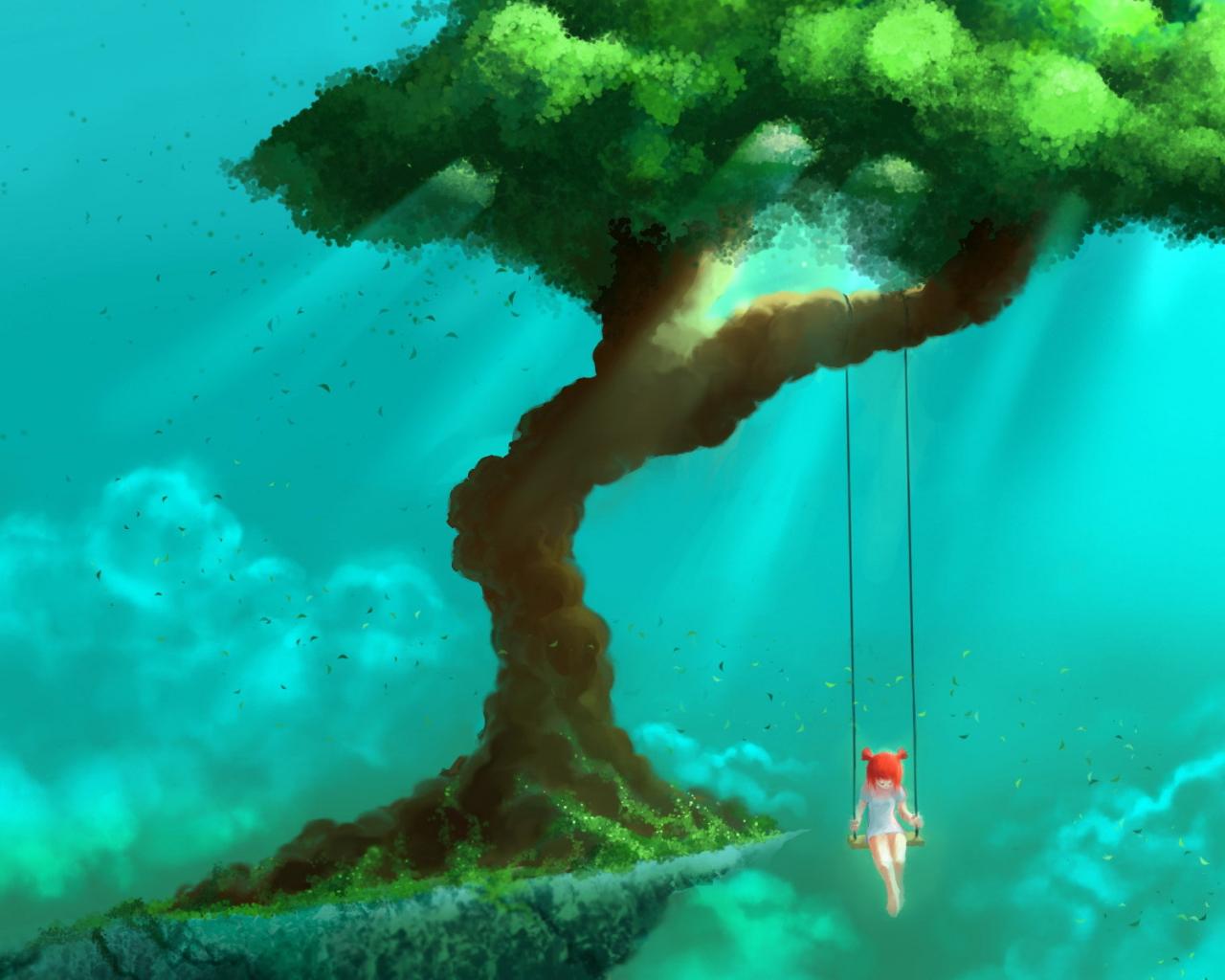 Обои Деревья, Девочка, качели