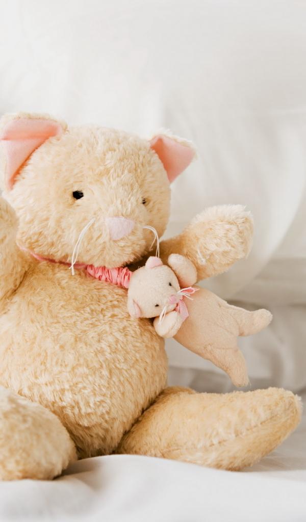 Обои Плюшевые кошка и мышка