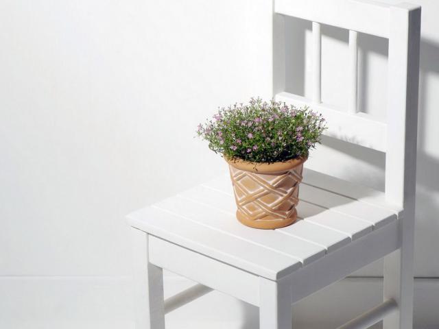 Обои Горшок с цветком на стуле