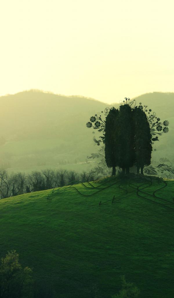 Обои Три дерева на холме
