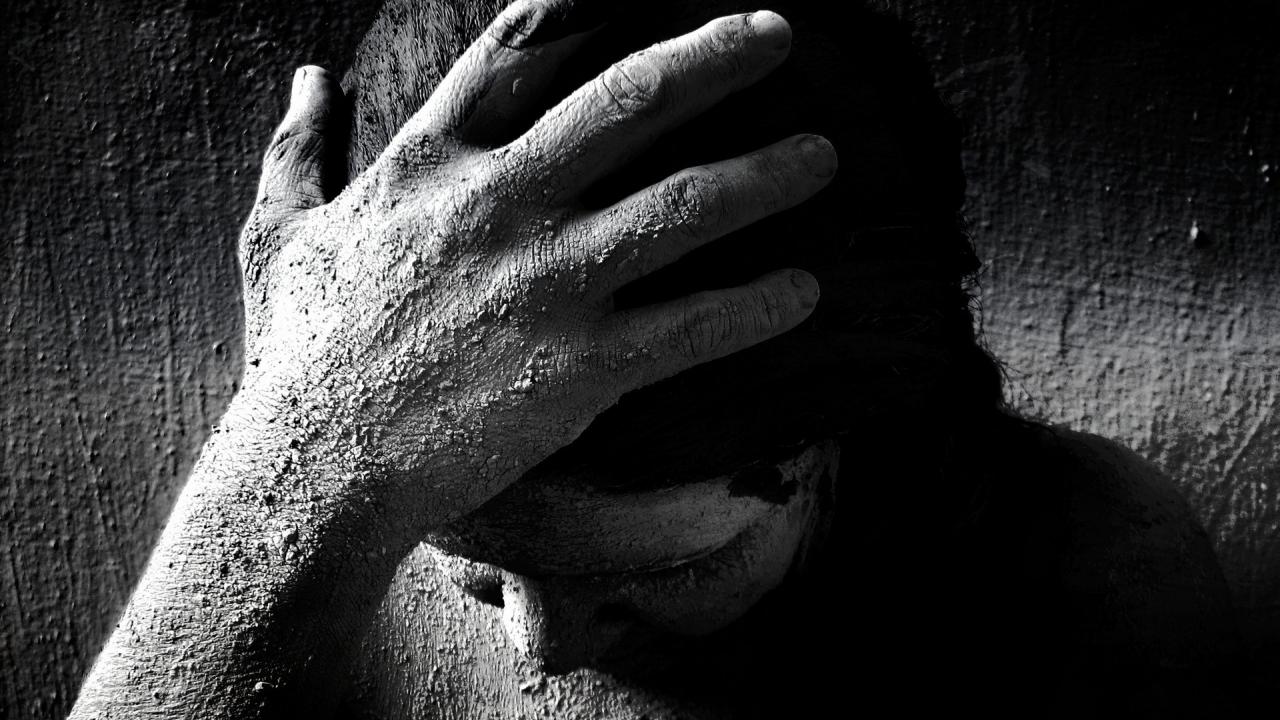 » Обои Голова девушки в стене