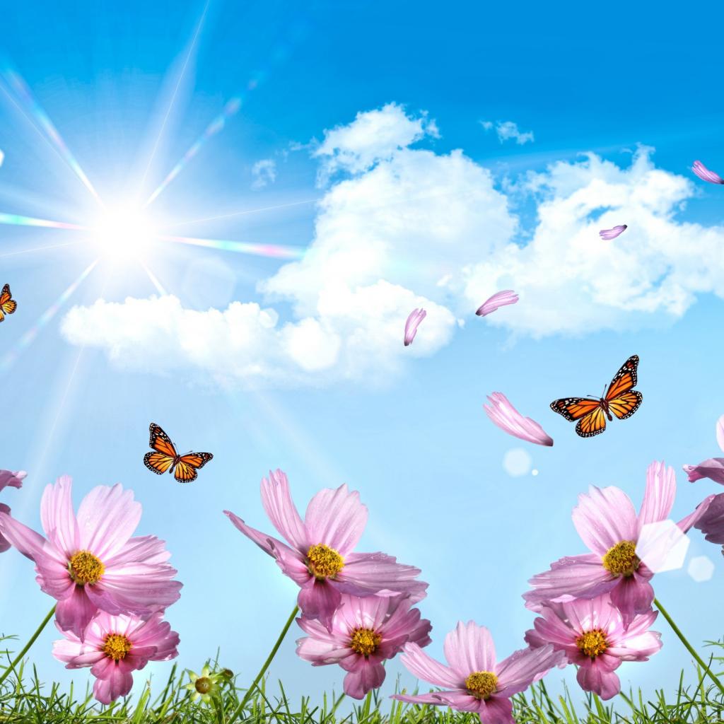 Обои Летают бабочки и лепестки