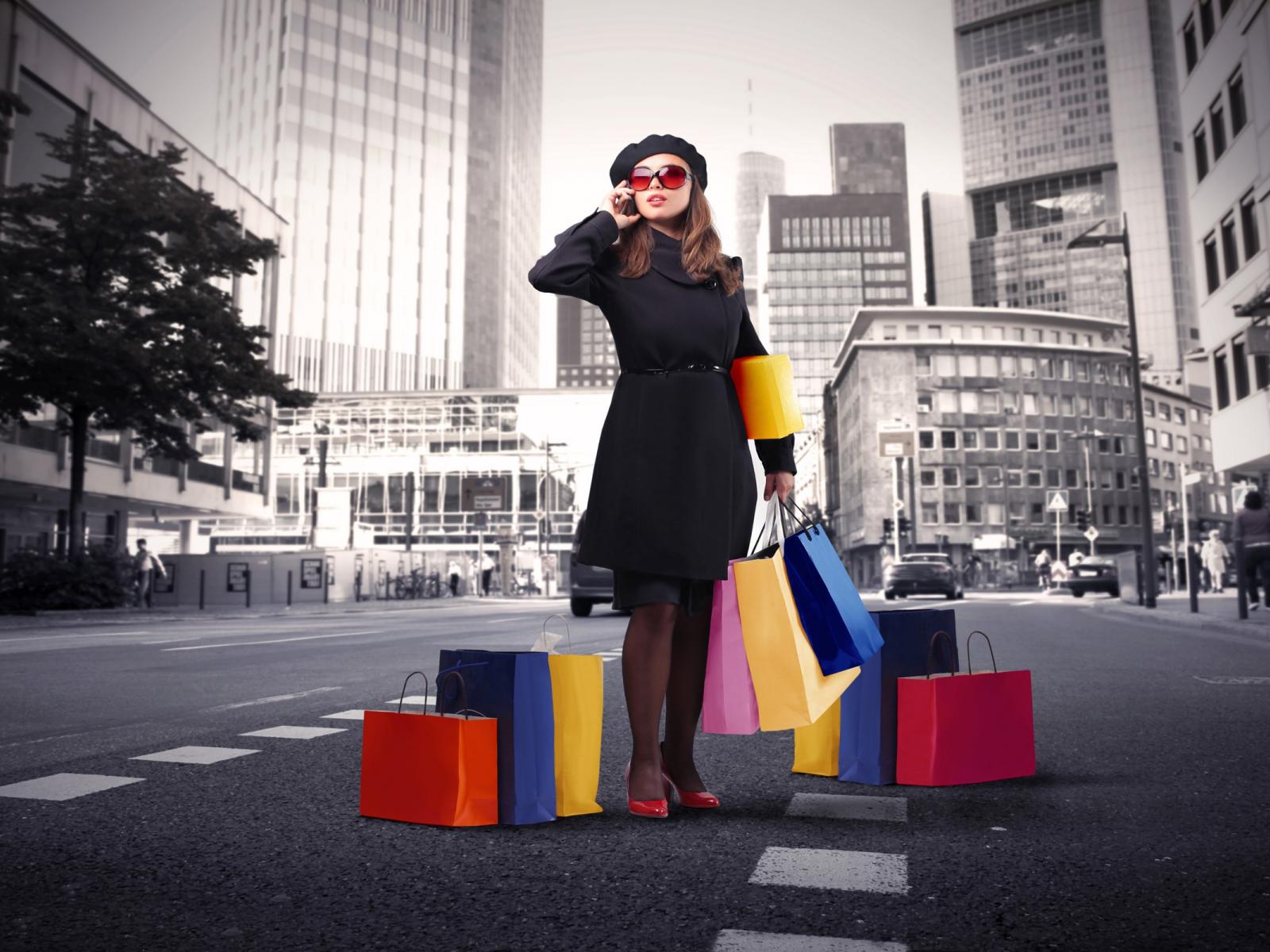 Обои Девушка в черно белом городе