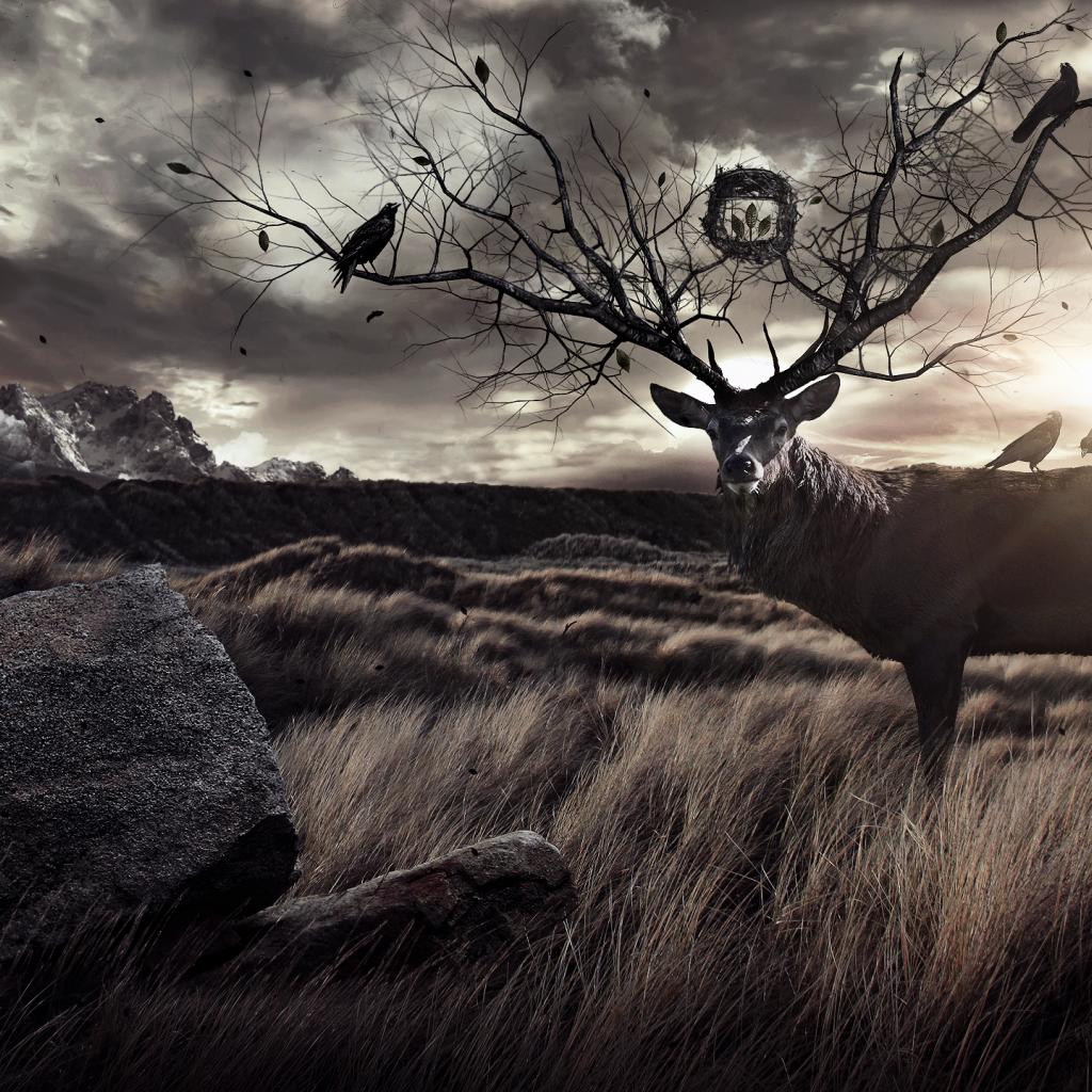 Обои Олень с рогами деревьями