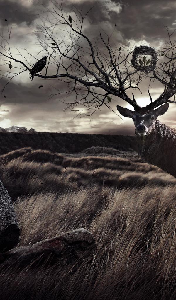 Обои Олень с рогами деревьями
