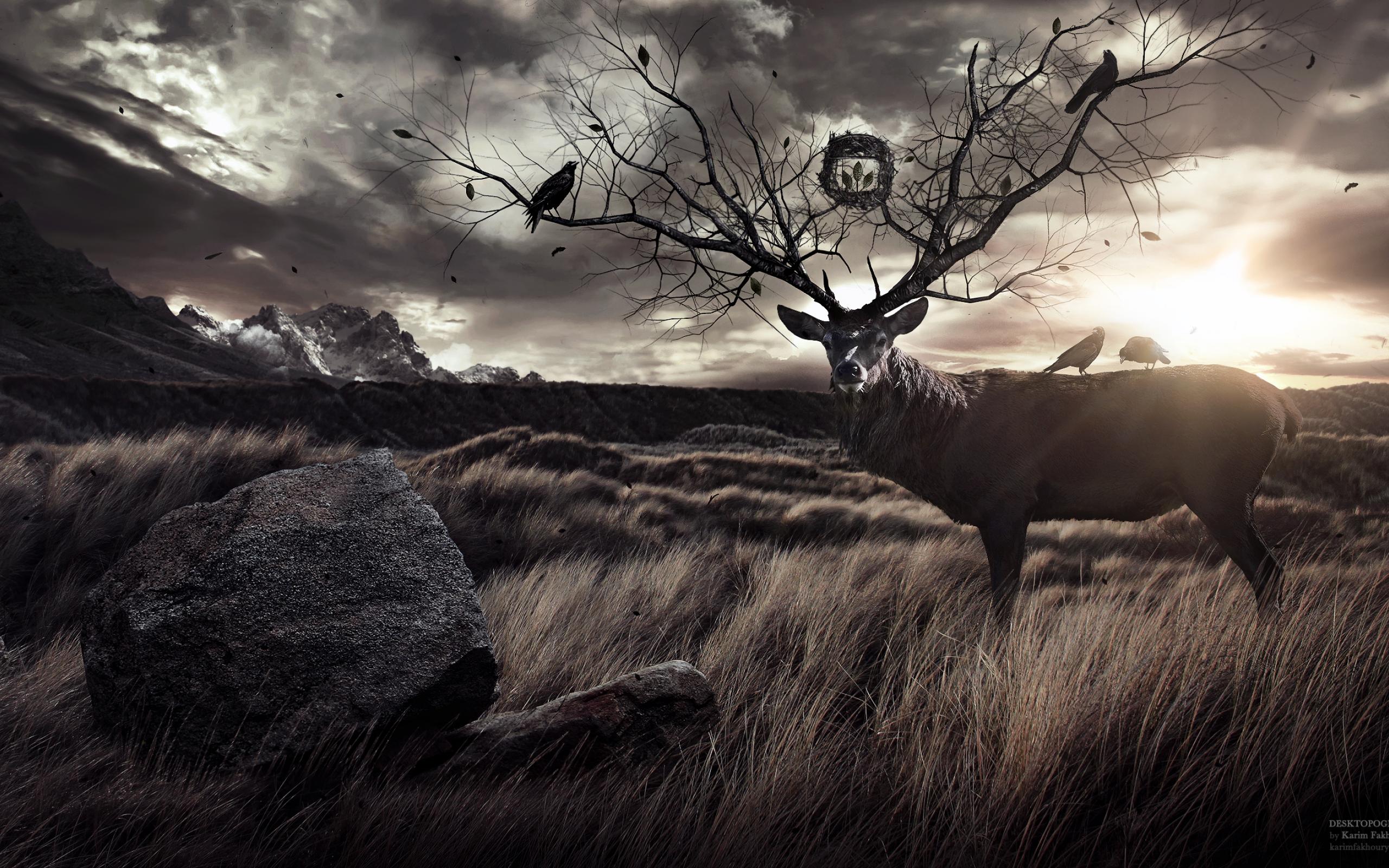 Обои Олень с рогами деревьями
