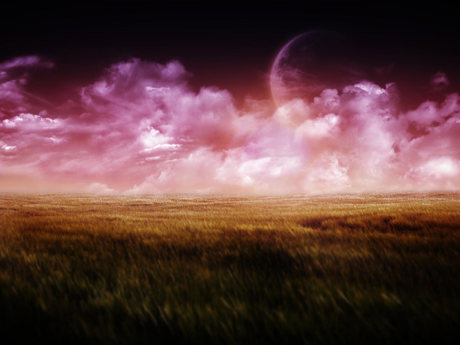 Обои Планета за розовыми облаками