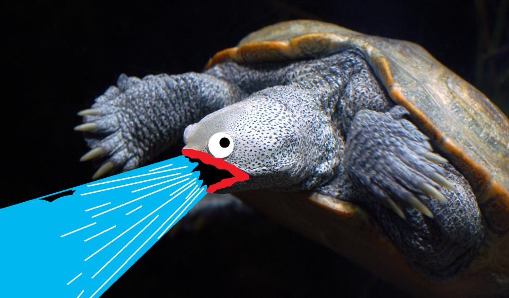 Обои Черепаха изрыгает воду