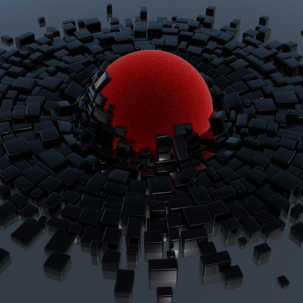 Обои Красный шар и черные кубики