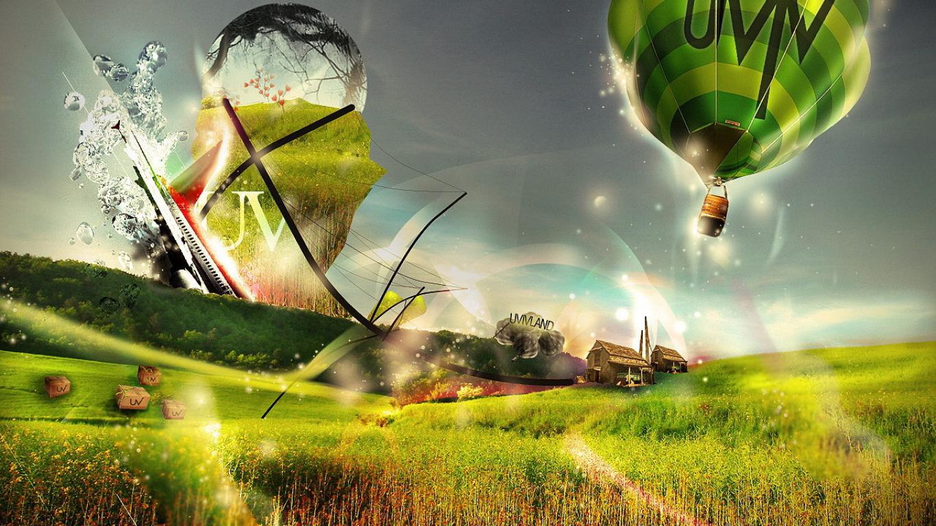 Обои Трава, Атмосфера, Воздушные шары