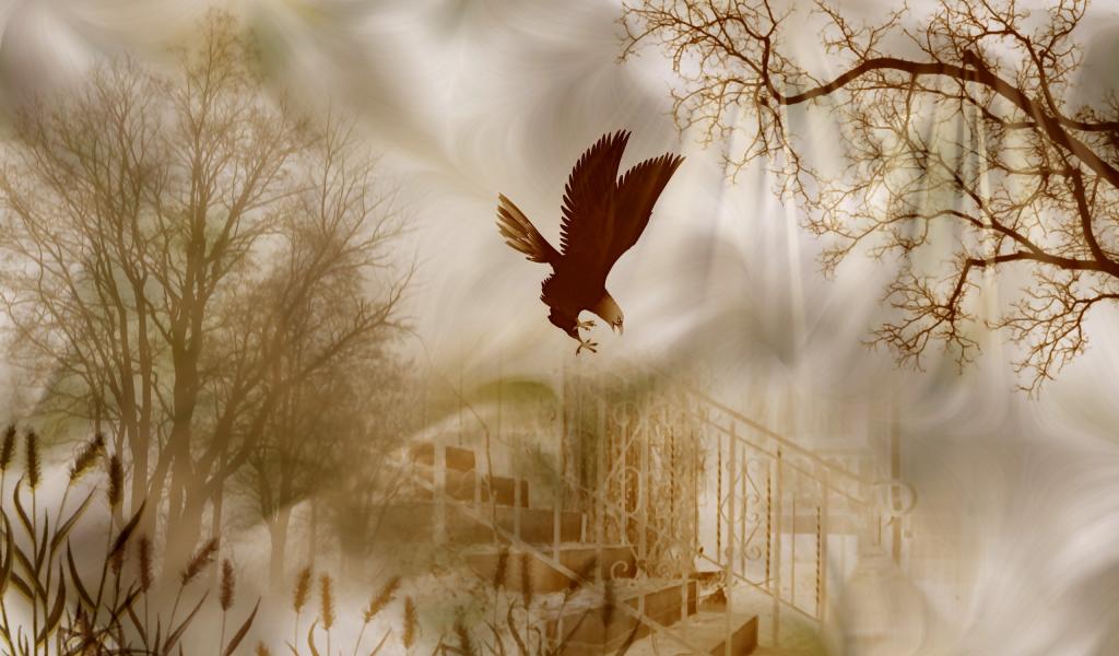 Обои Деревья, стиль, ступени
