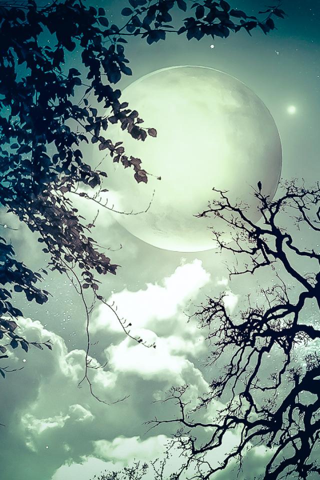 Обои Небо, Деревья, Луна, Звезды