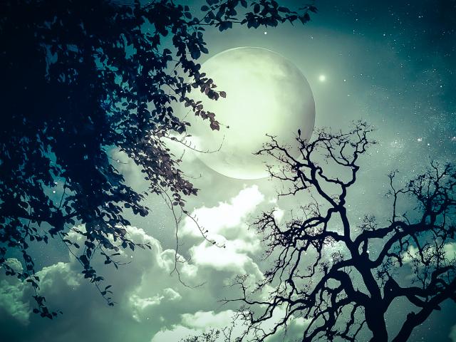 Обои Небо, Деревья, Луна, Звезды