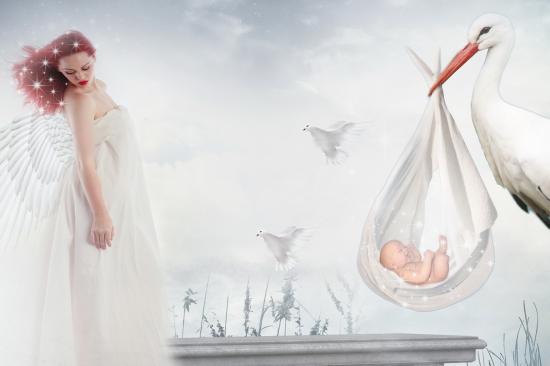 Обои Ребенок, крылья, аист