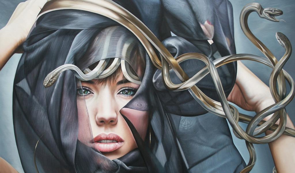 » Обои Лицо, Змея , платок