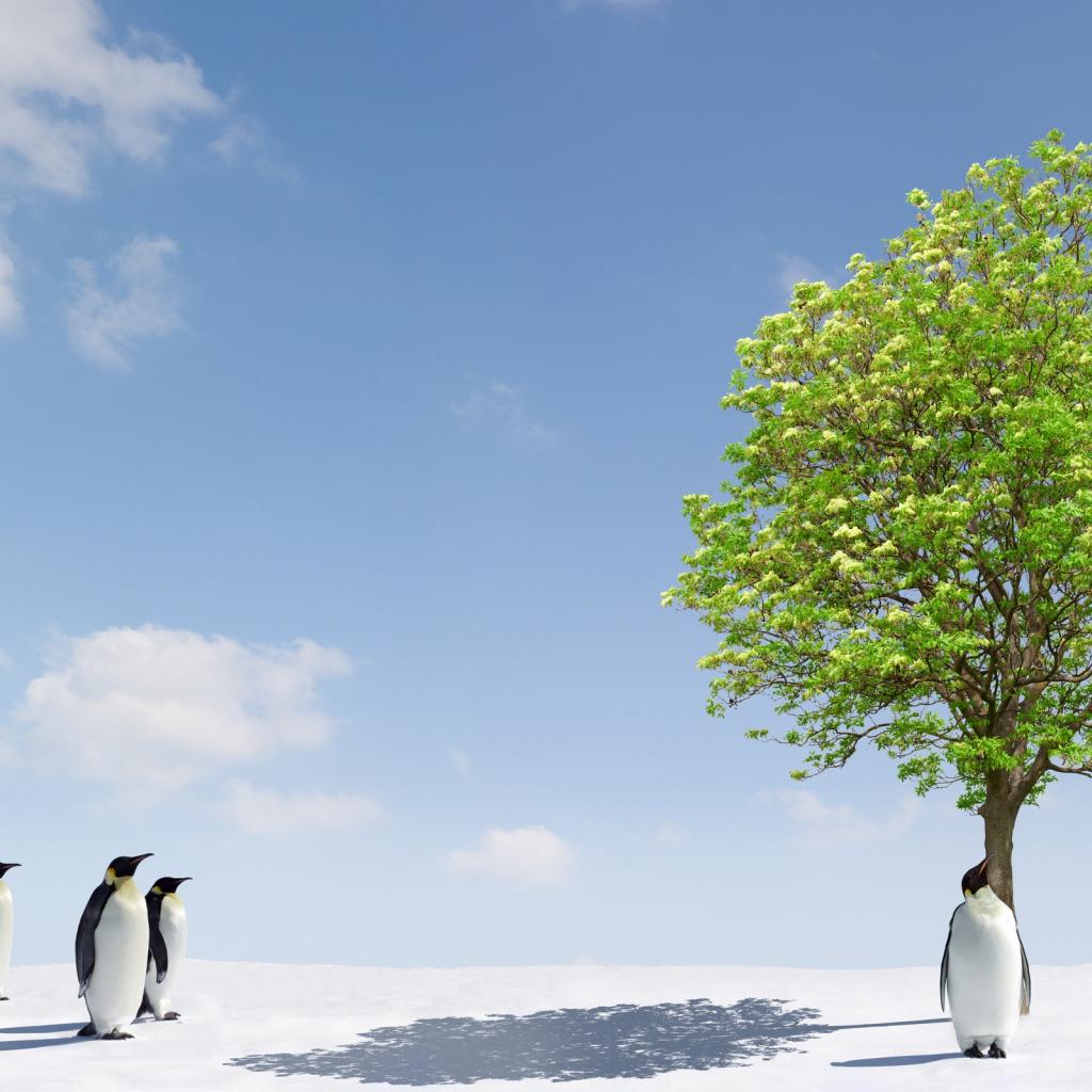 Обои Пингвины и дерево