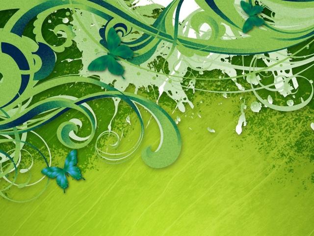 Обои Бабочки на зеленом фоне