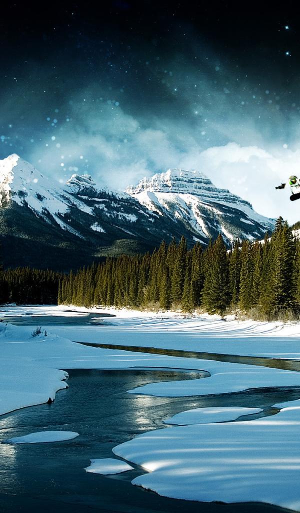 Обои Экстремальный сноубордист