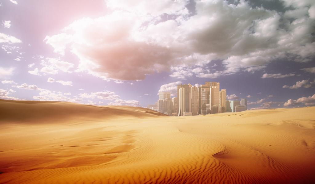 Обои Город мираж на поле