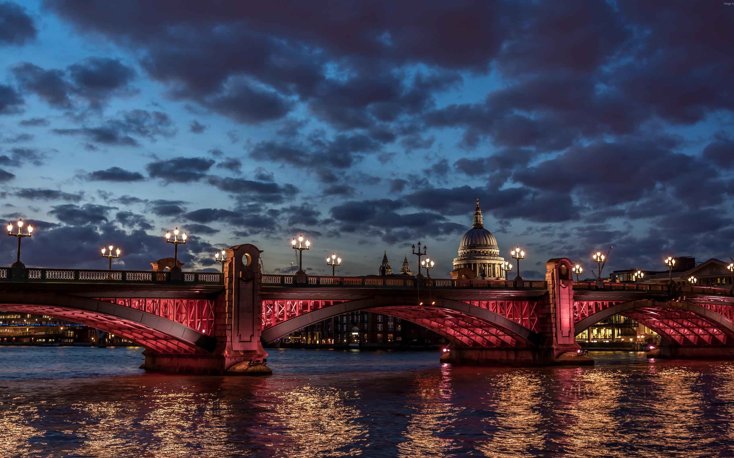 Обои Красная подсветка моста в Лондоне