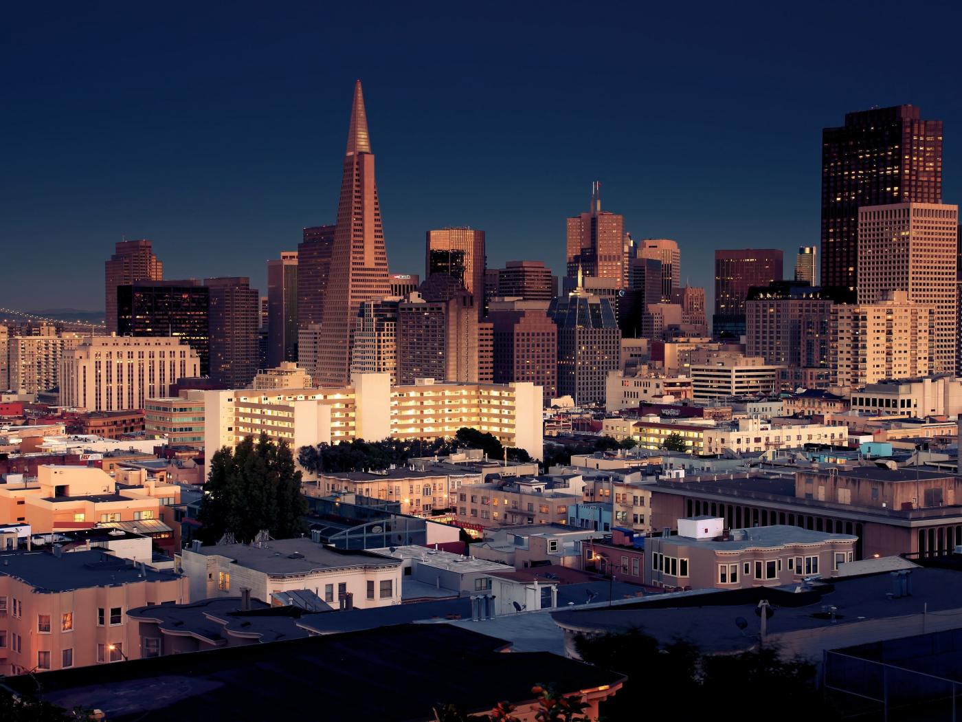 Обои Вечерние небоскребы города Сан-Франциско