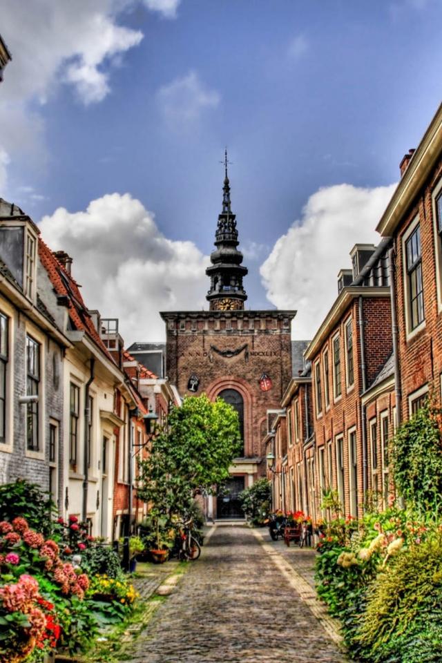 Обои Цветущая узкая улица