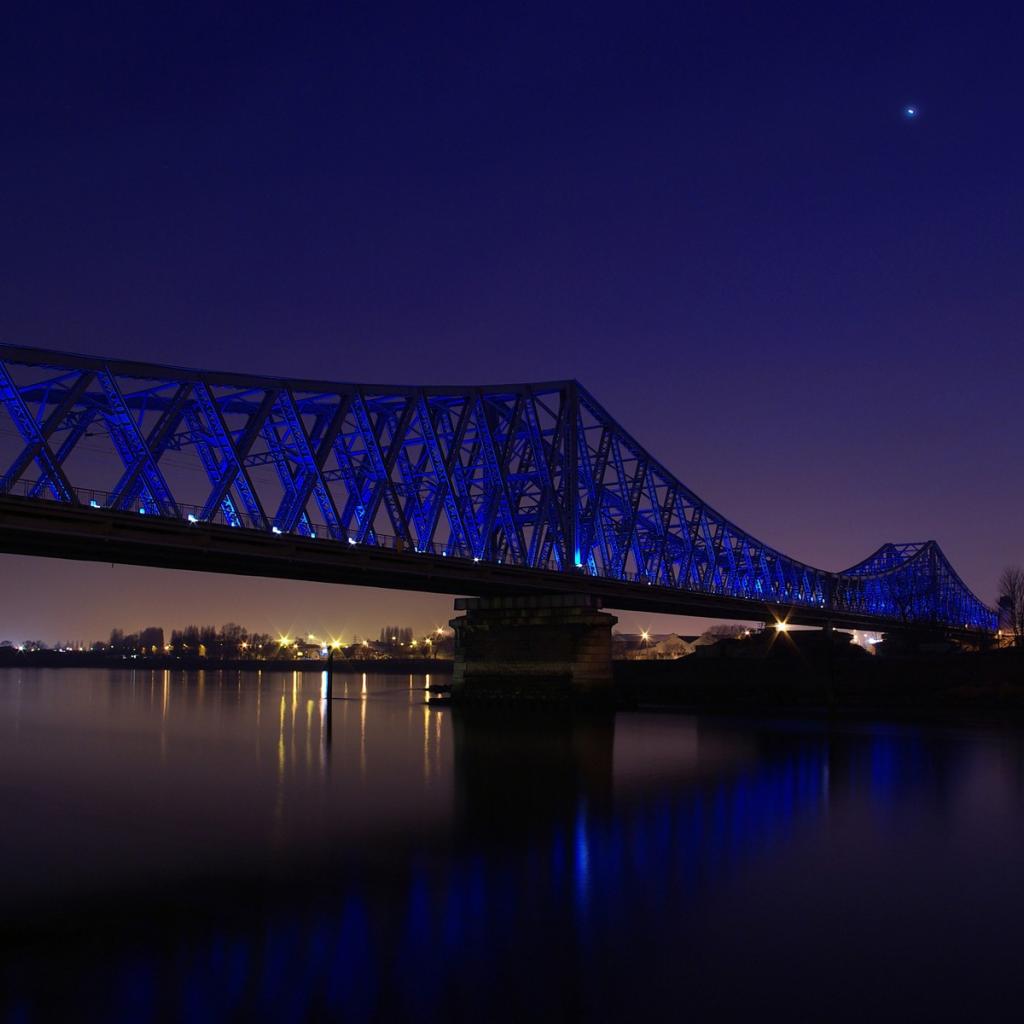 Обои Синяя ночная подсветка моста через реку