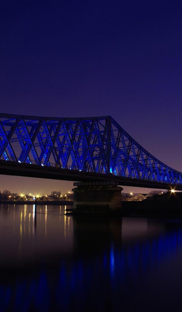 Обои Синяя ночная подсветка моста через реку