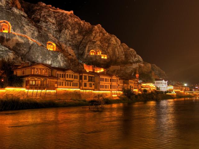 Обои Дома между скалами и водой