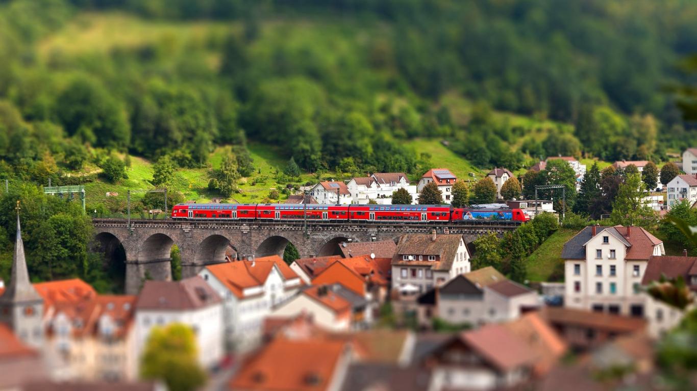 Обои Красный поезд на мосту